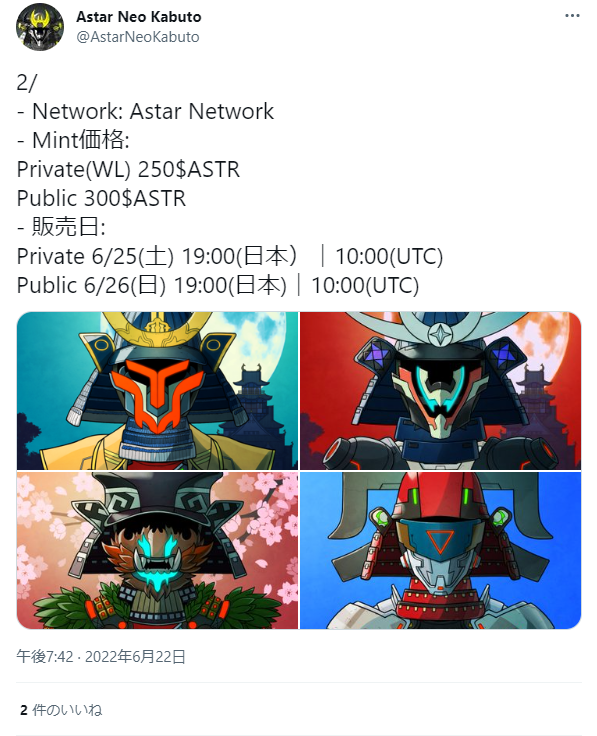 2022年4月17日にはじめてツイートがされたプロジェクトである。当初より名前のとおりAstarNetworkでのリリースが告知されていた。