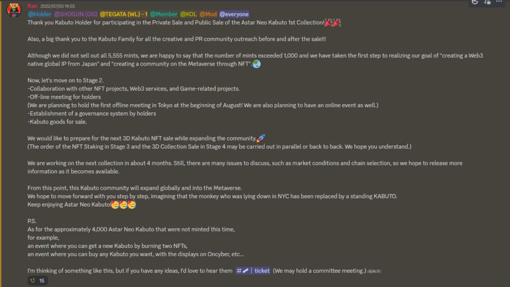 次にDiscordでのアナウンスは10月19日、前回のアナウンスより約3ヶ月後のことである。