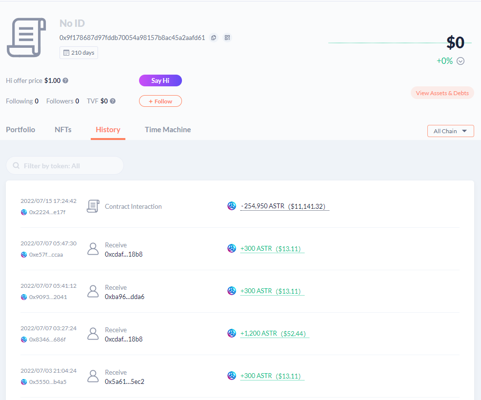 https://debank.com/profile/0x9f178687d97fddb70054a98157b8ac45a2aafd61/history