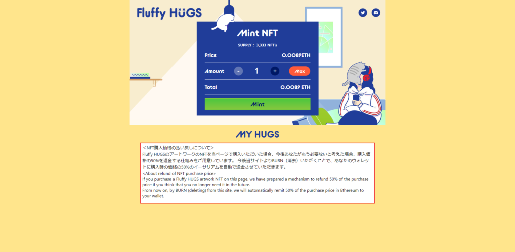 ※現在、価格はプレセール価格の0.0089へと値下げされている。また0.015のパブリックセール価格でミントしたホルダーには購入点数分をエアドロップすることで補填とすることが発表されている。
