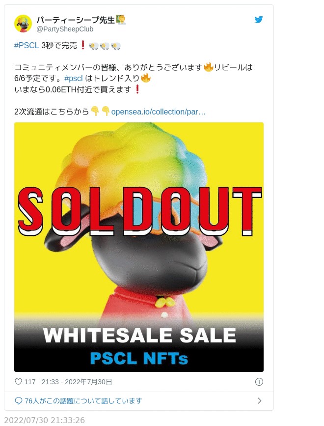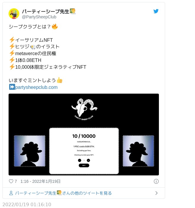 PixelHeroesX完売を待たずに2022年1月17日、彼らはEthereumでの新コレクション「PartySheepClub」を発売する。
