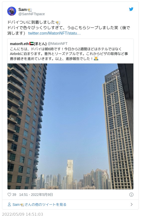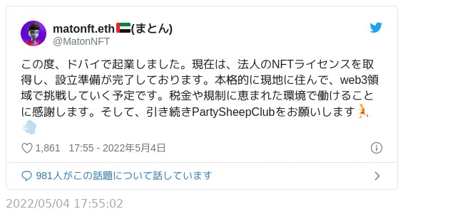 その後、彼らはNFT事業のためにドバイでの起業と移住を公表。