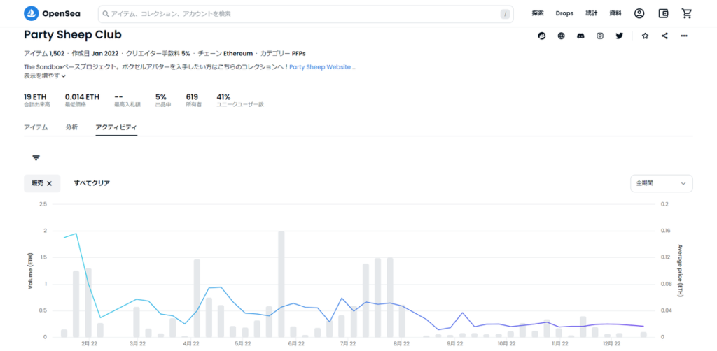 当初、0.08ETHで発売されたPSCは総流通量19ETH、2022年12月末時点のフロアプライスは0.014ETH。