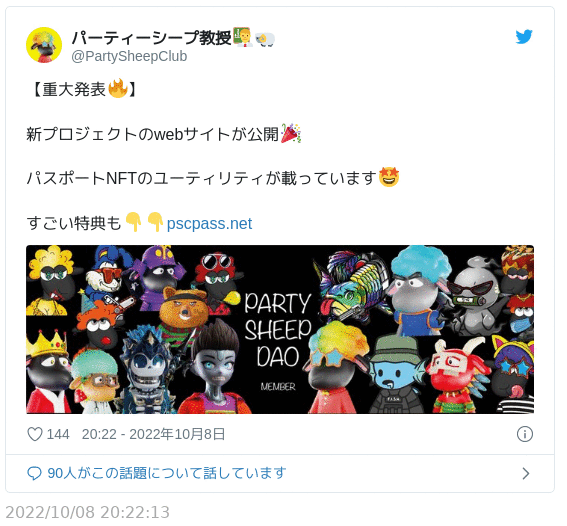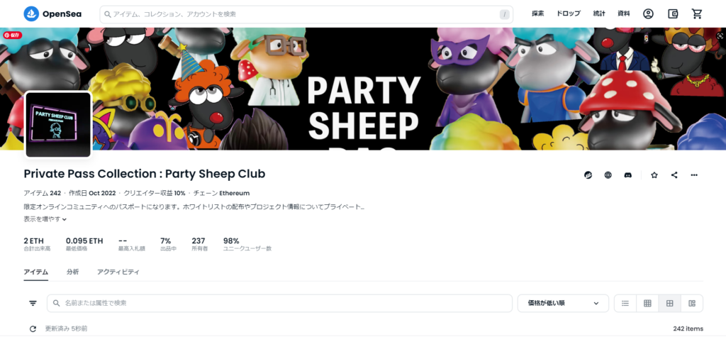 このコレクションはPartySheepClubのパスポートNFT位置づけであり総供給数は300枚、単価は0.1ETHと公式サイトに記載がある。