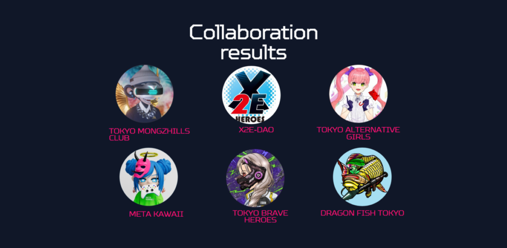 DragonFishTokyoは公式サイトの「Collaboration results」にアイコンがあるがCryptoNinjaPartnersとの関係は不明である。