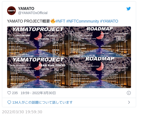 YAMATOプロジェクトの公式アカウントが最初にツイートしたのは2022年3月12日、いわゆる「スニークピーク」がツイートされた。